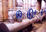 蒸気配管はバルブ類以外の部分は保温を行っており、熱エネルギーのロスを少なくしていますが、バルブ類のような形状の複雑な部分については保温を行っていません。 |